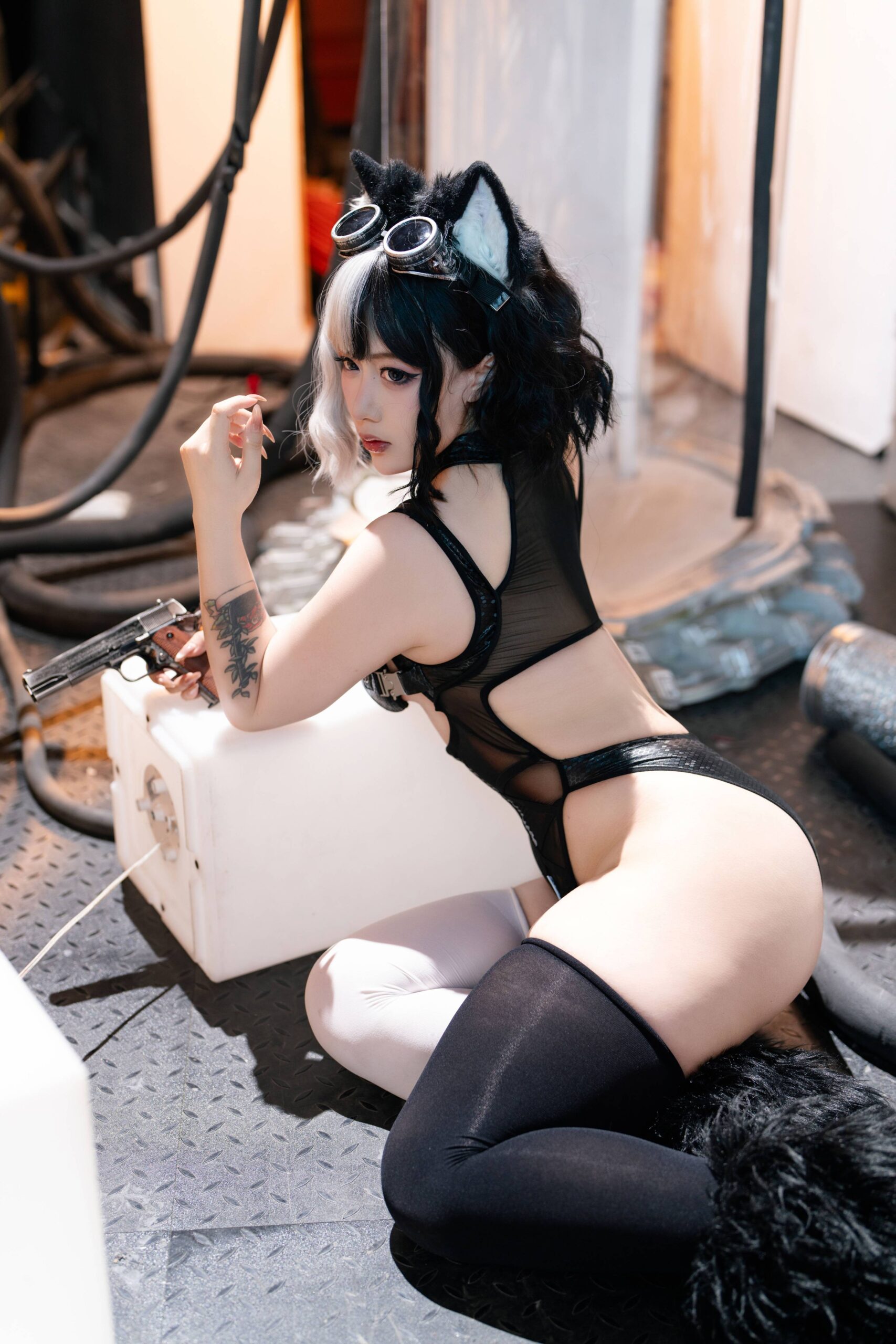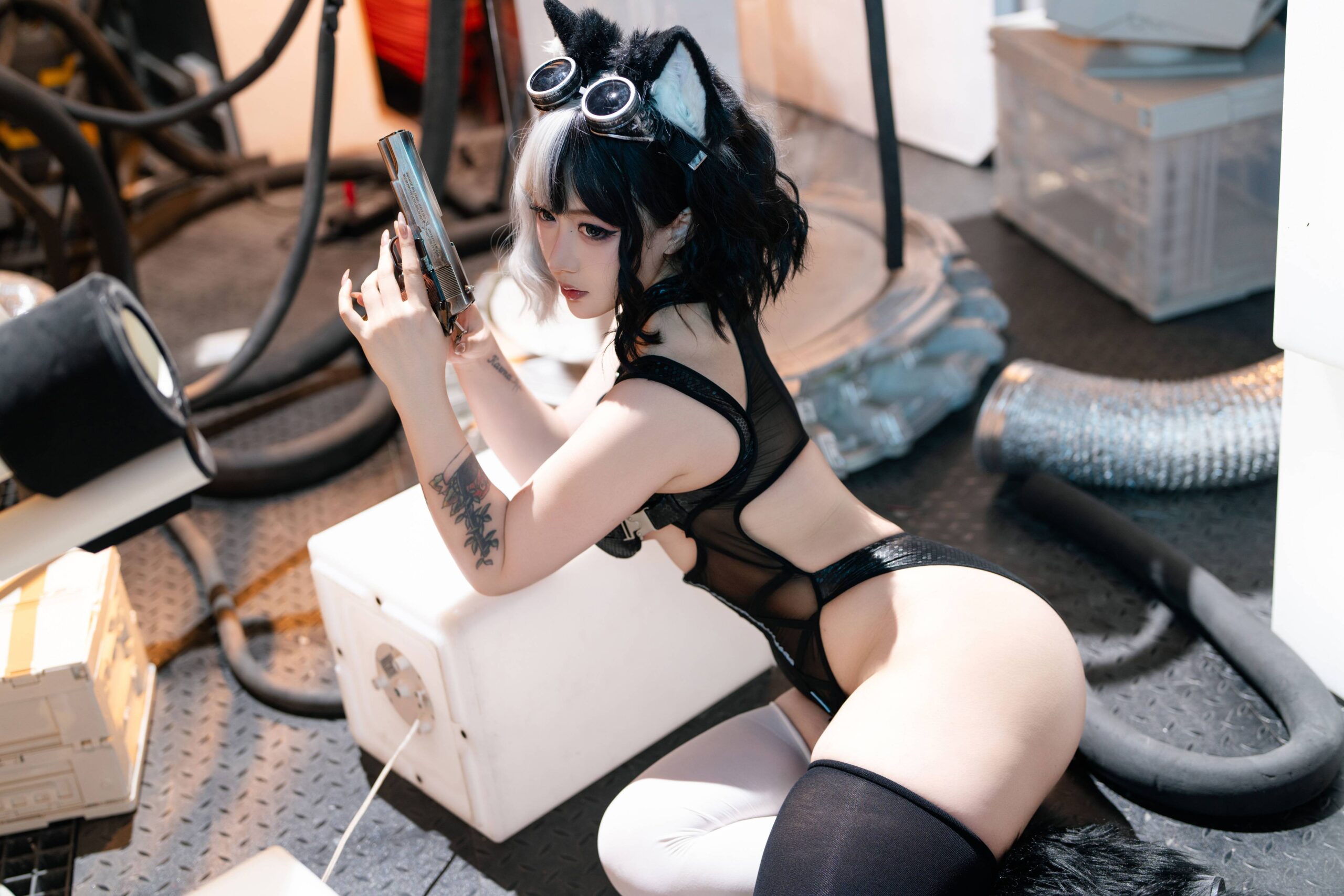由老圓拍攝的武裝少女寫真,以她們手持手槍的英姿颯爽為主題。每幅照片都生動地呈現了少女們在戰鬥姿態中的堅定和自信,展現出她們的戰士本色。這些影像捕捉到她們眼中的堅毅與決心,背景與服裝設計更進一步凸顯了她們的個性和角色特質。這不僅是一次視覺上的享受,也是對於女性力量和獨立精神的肯定,激勵觀眾思考和欣賞女性在不同場景下展現的多樣性和魅力。