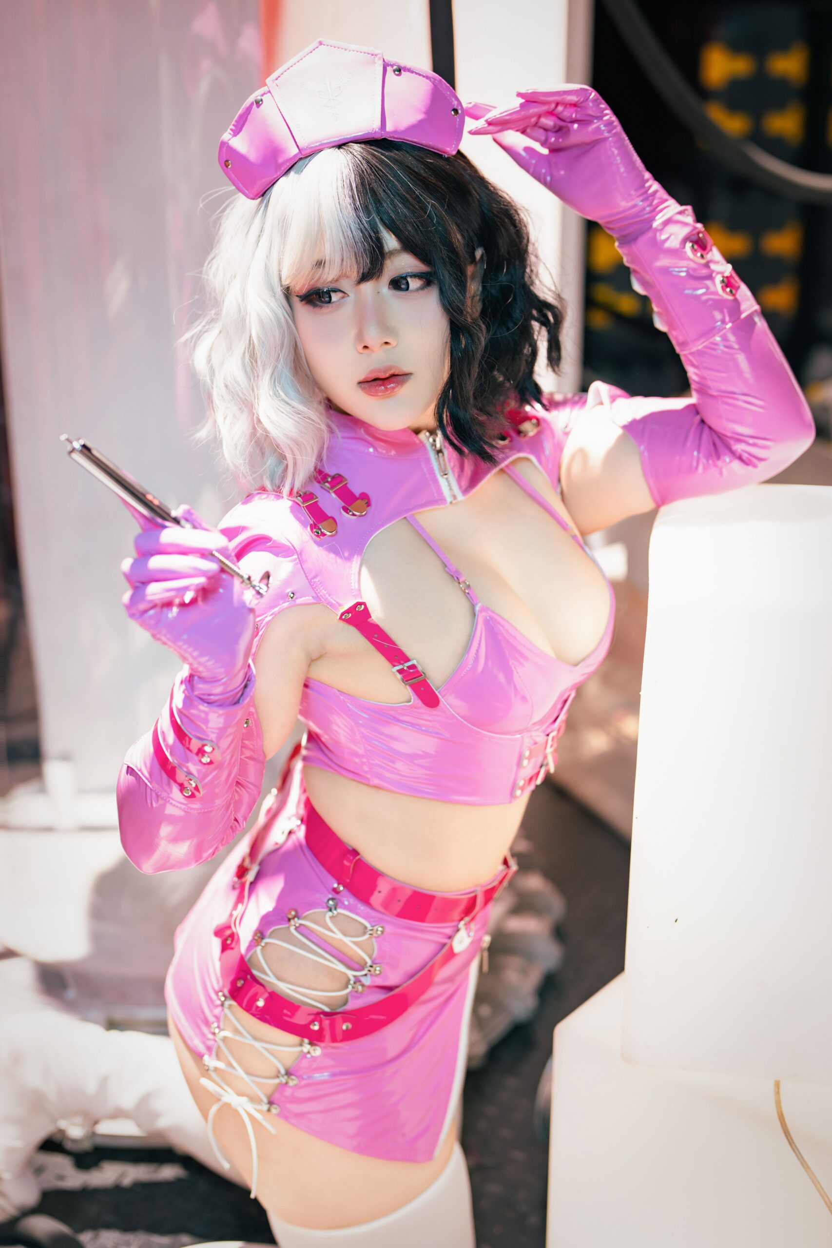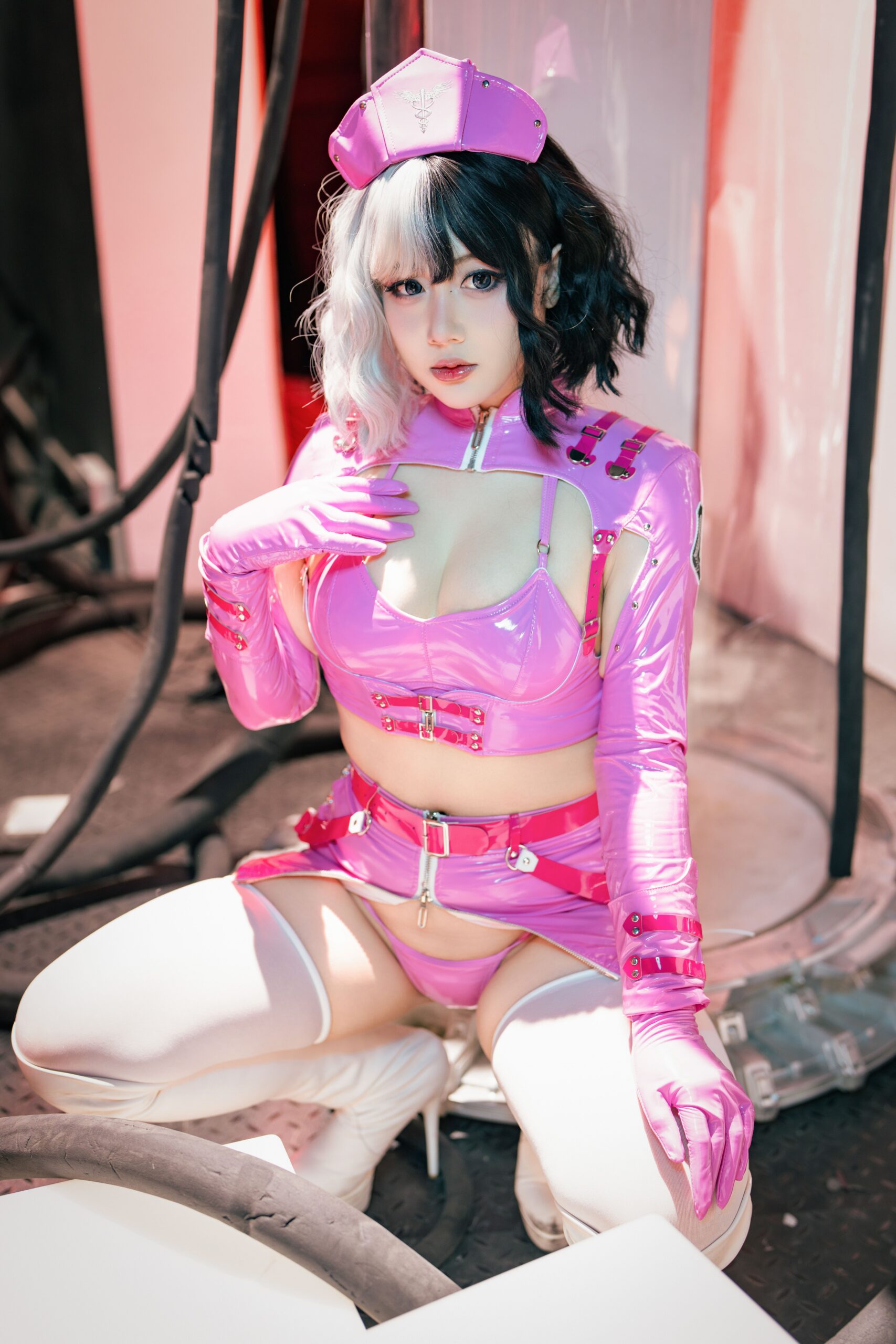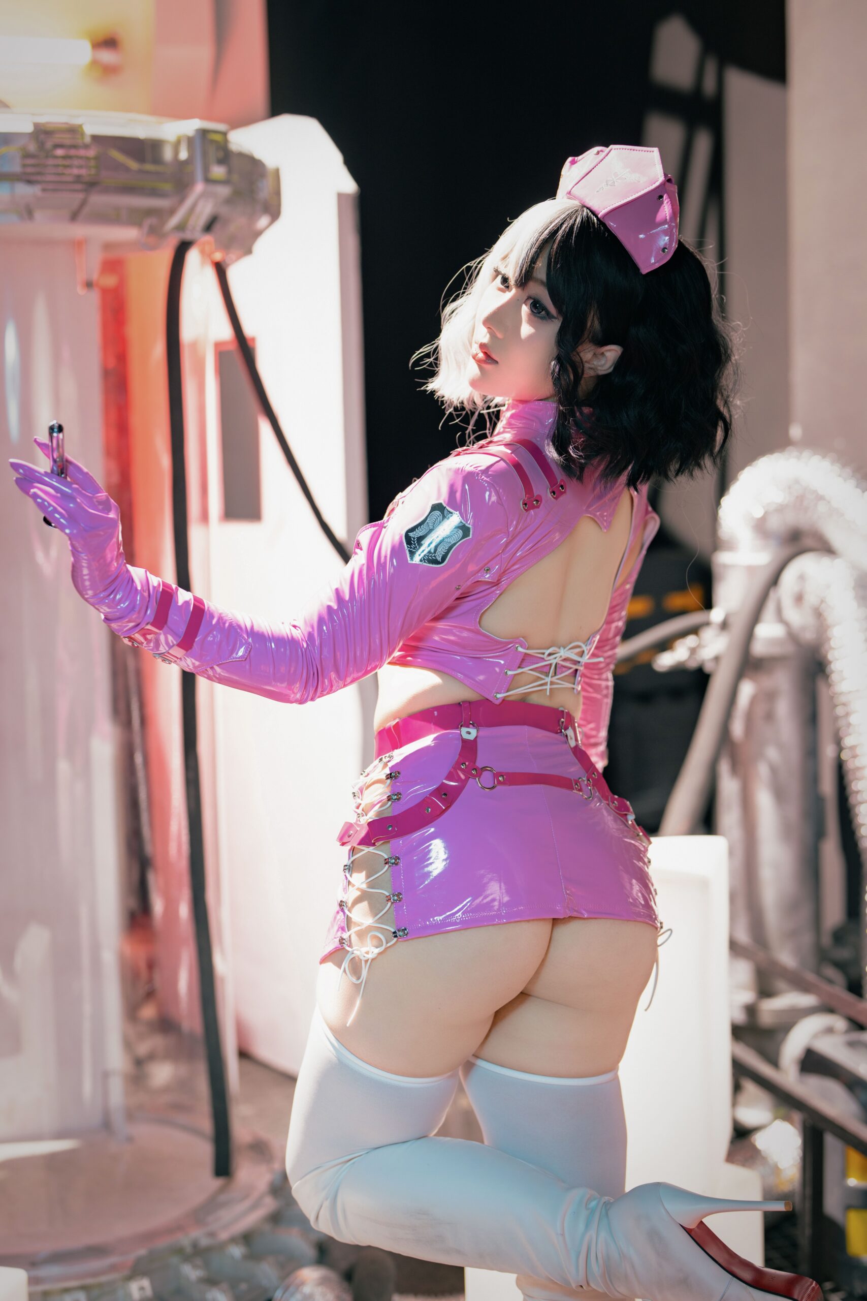這系列由老圓拍攝的未來風護士裝cosplay寫真,展示了前衛與創意結合的獨特風格。每幅照片中的護士裝設計充滿科技感與未來元素,透過金屬質感和高科技配件,營造出一種科幻世界的氛圍。這些影像捕捉到模特兒在擺姿勢時展現出的堅毅與自信,背景設計進一步突顯了未來主題,將觀眾帶入一個充滿想像力的未來世界。整體而言,這組寫真不僅是視覺上的享受,更展示了cosplay在風格和創意上的無限可能,激發觀眾對於未來科技和角色扮演的興趣與思考。