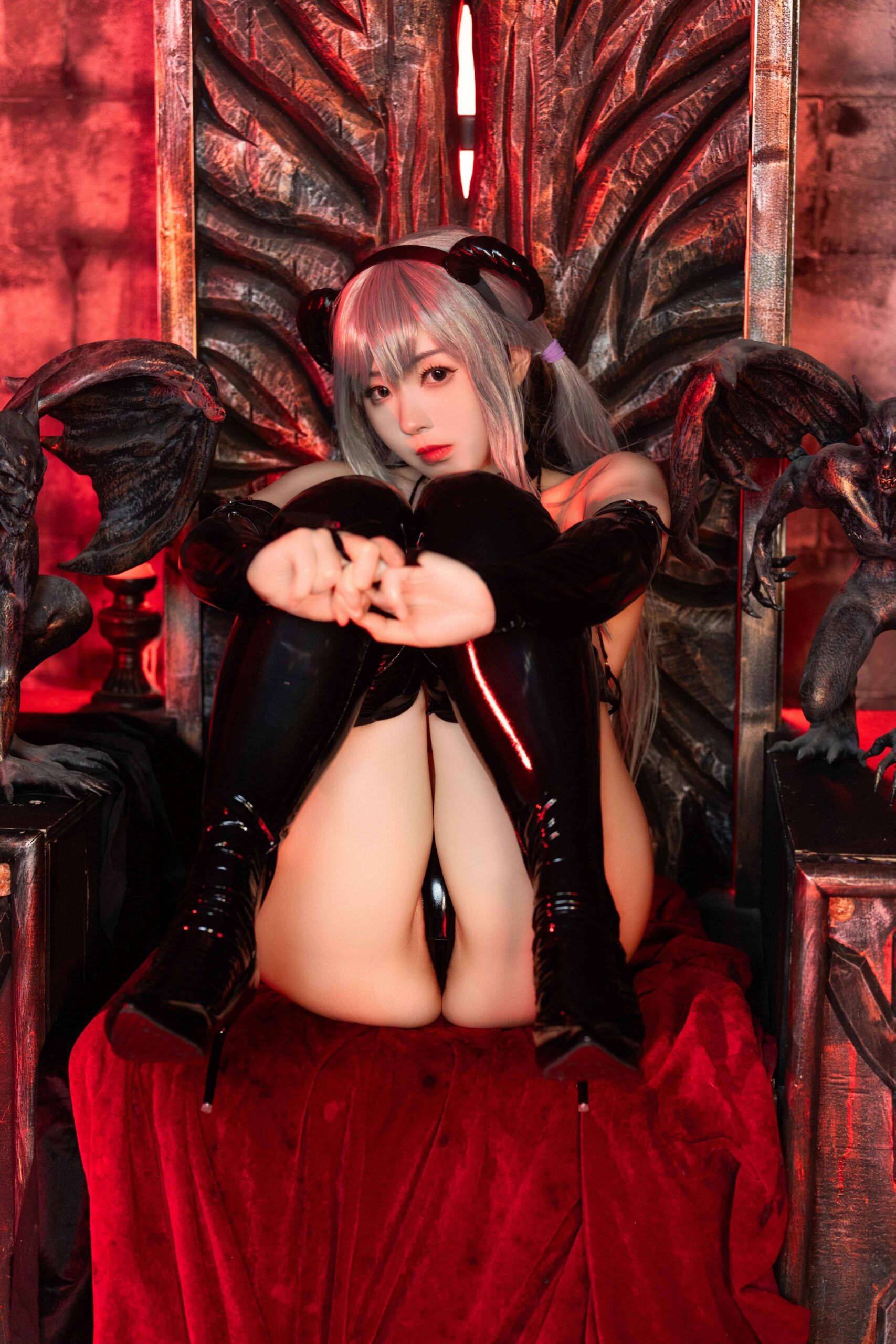 口綠扮演魅魔,穿著黑色緊身比基尼,在神秘的氛圍中拍攝了一組充滿誘惑與神秘感的寫真。她的造型展現了魅魔的妖媚和神秘,黑色比基尼突顯了她的性感和魅力。隱含著一種神秘而詭異的氛圍。口綠的表情充滿了挑逗與神秘,每一個畫面都散發出她作為魅魔的獨特魅力,讓人不由自主地被吸引和著迷。